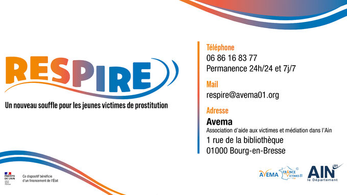 Le Département de l’Ain et l’Avema 01 (association d’aide aux victimes et médiation), en partenariat avec la Préfecture, lancent le dispositif RESPIRE pour aider les jeunes victimes de prostitution.
